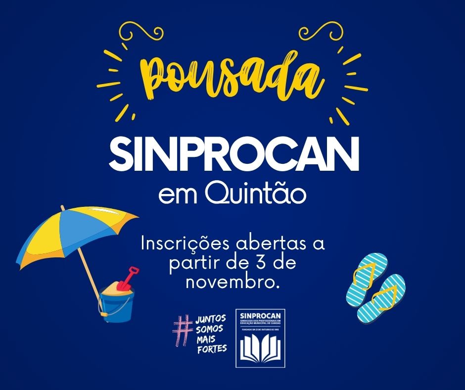 A temporada de Verão da Pousada Sinprocan será aberta no dia 15 de dezembro de 2025. Associados e familiares poderão desfrutar do espaço à beira-mar da praia de Quintão. O local conta com área comum de churrasqueiras e uma cozinha coletiva, além de oito quartos com frigobar, cama de casal, beliches, televisão, ventilador e banheiro privativo.