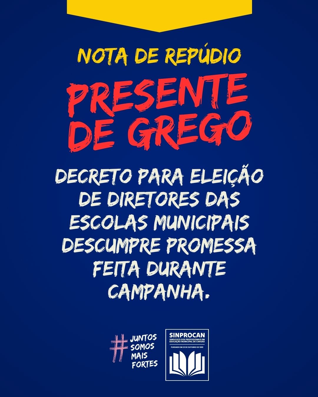 No dia em que era para celebrar a dedicação dos diretores escolares, 12 de novembro, os profissionais da educação de Canoas foram surpreendidos com um verdadeiro presente de grego com a publicação do Decreto que trata das Eleições de Diretores.